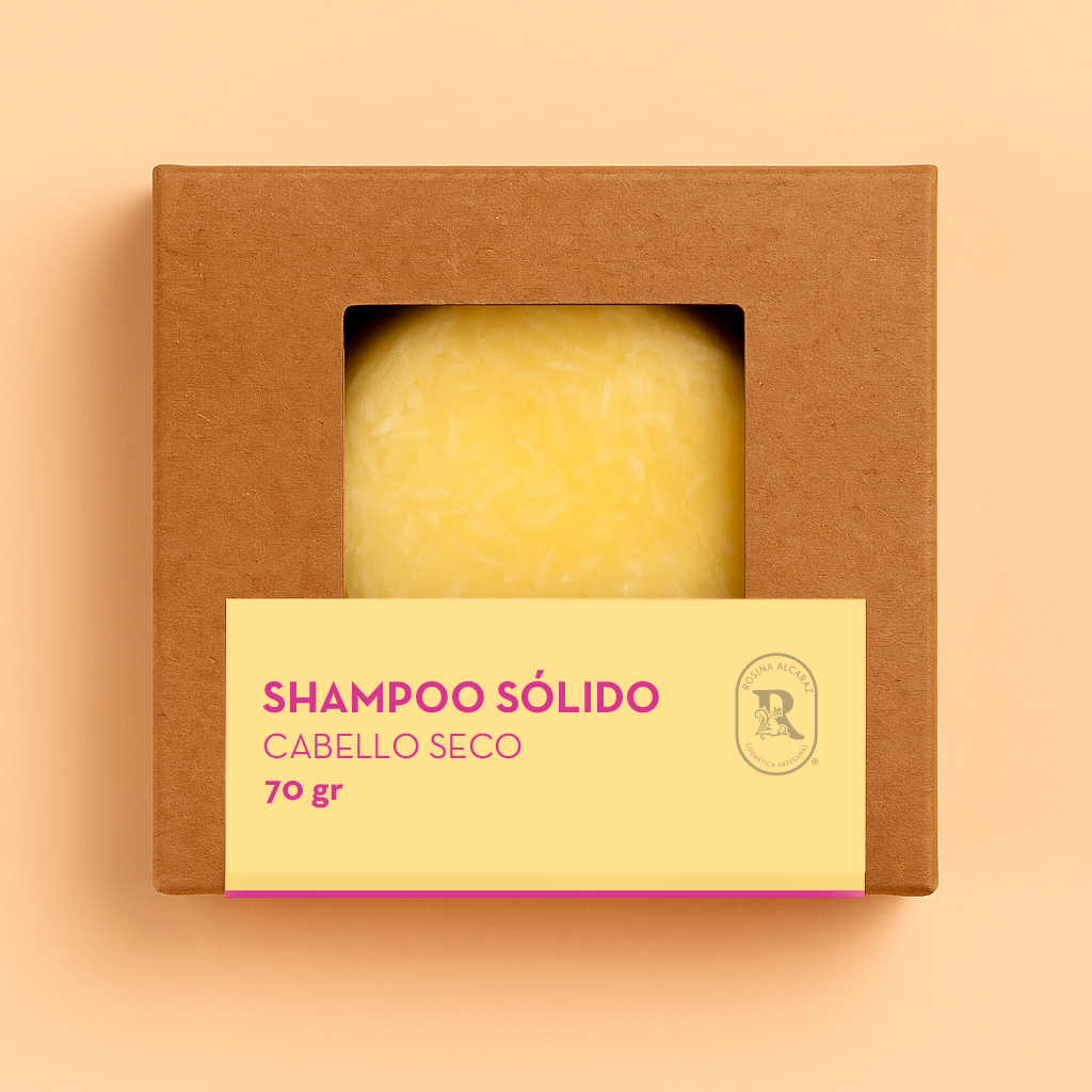 Hidrata profundamente y restaura la vitalidad de tu cabello con el Shampoo Sólido para Cabello Seco de Rosina Alcaraz. Diseñado especialmente para melenas secas o quebradizas, su fórmula nutre intensamente desde la raíz hasta las puntas, devolviendo suavidad y brillo natural.